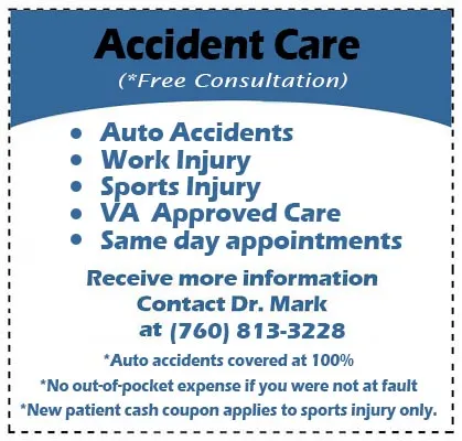 If you’ve been in an auto accident, make an appointment with Dr. Mark for an effective diagnosis and treatment plan for your auto injury in San Marcos, CA by calling (760) 813-3228.